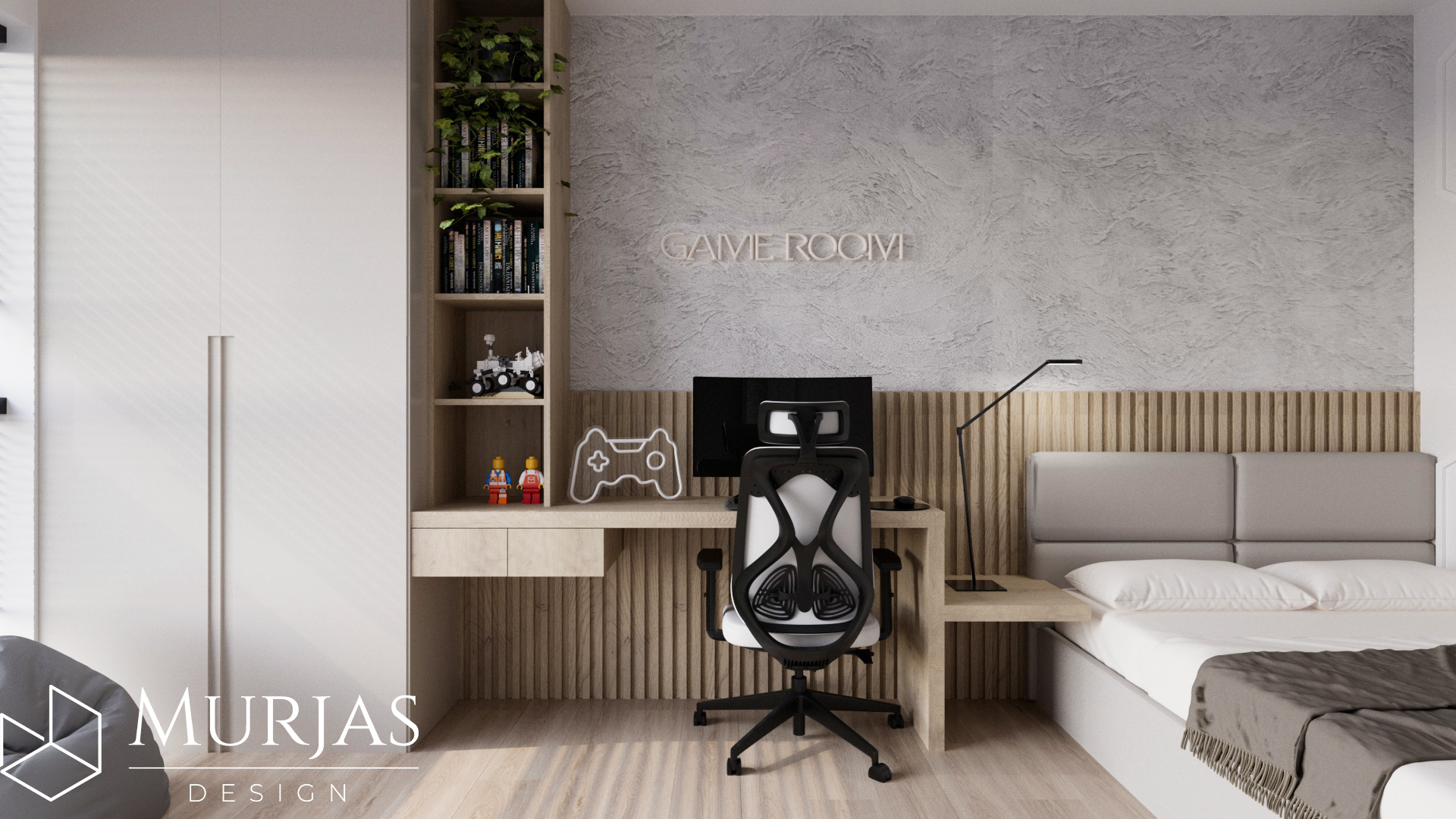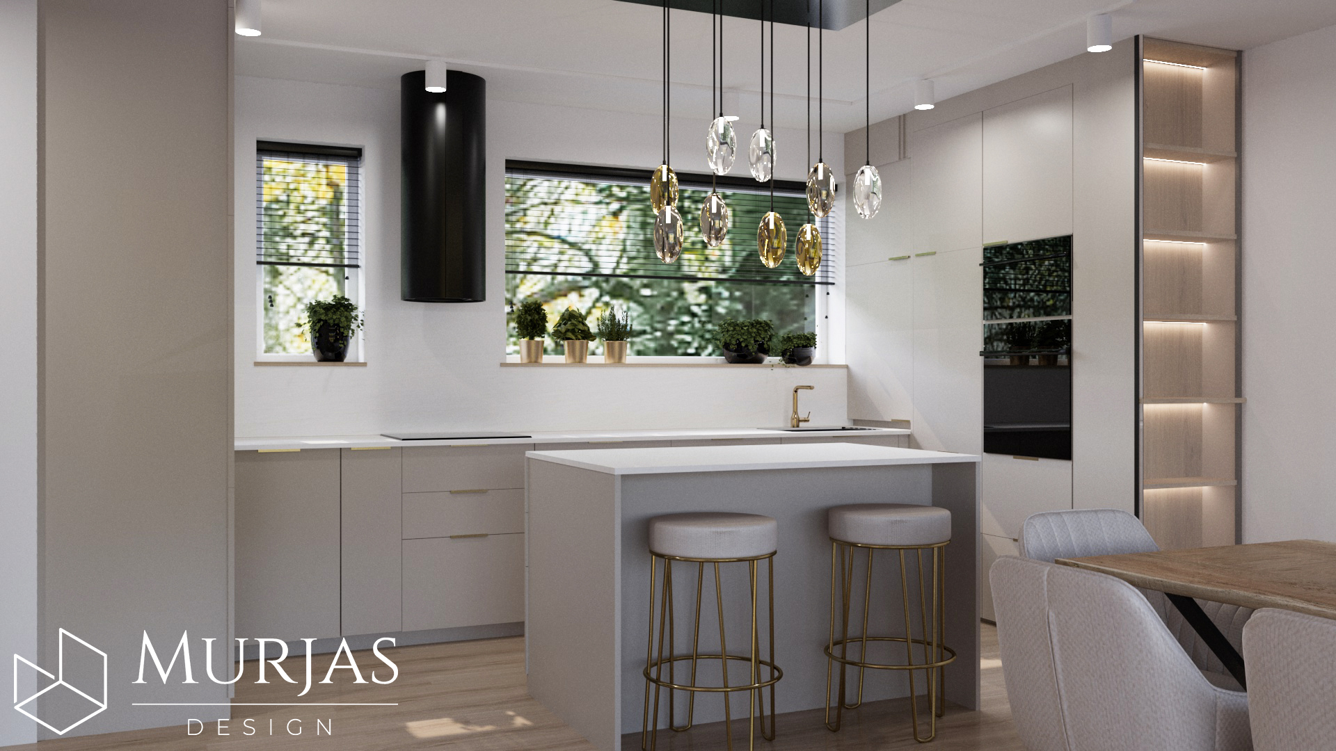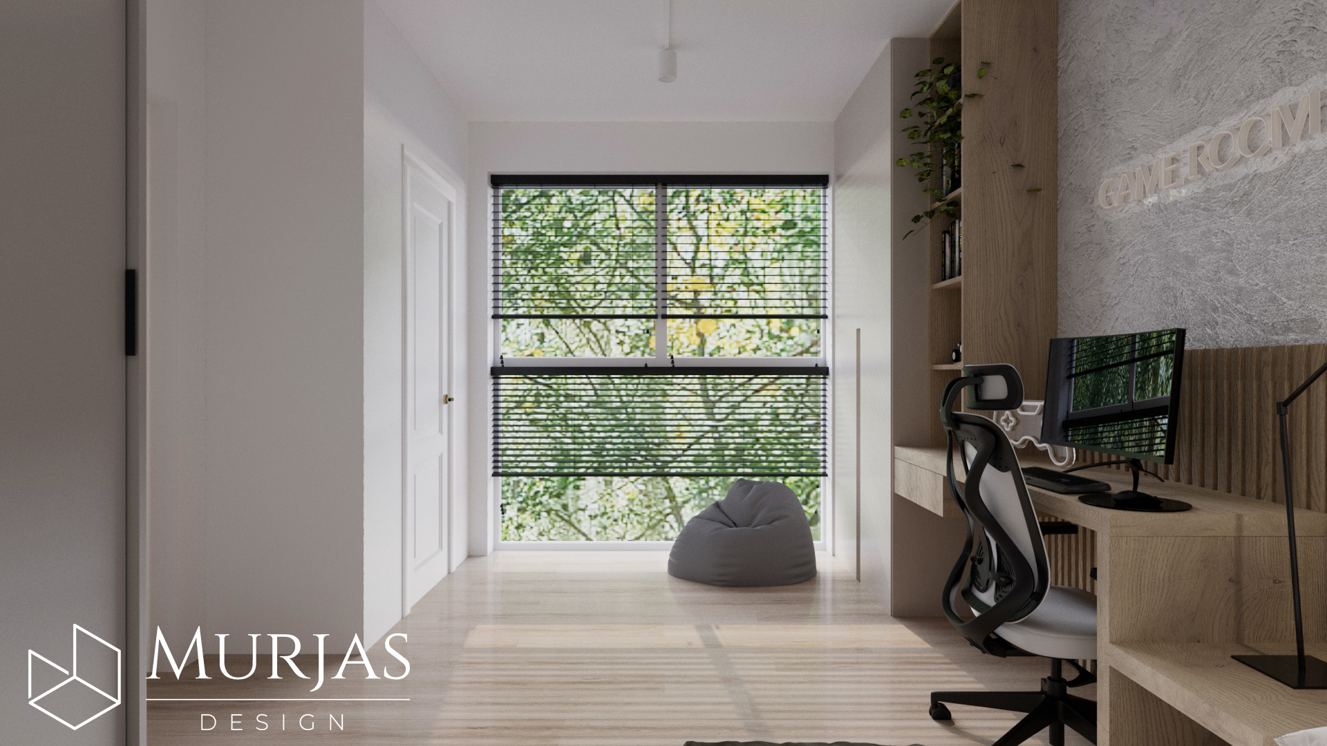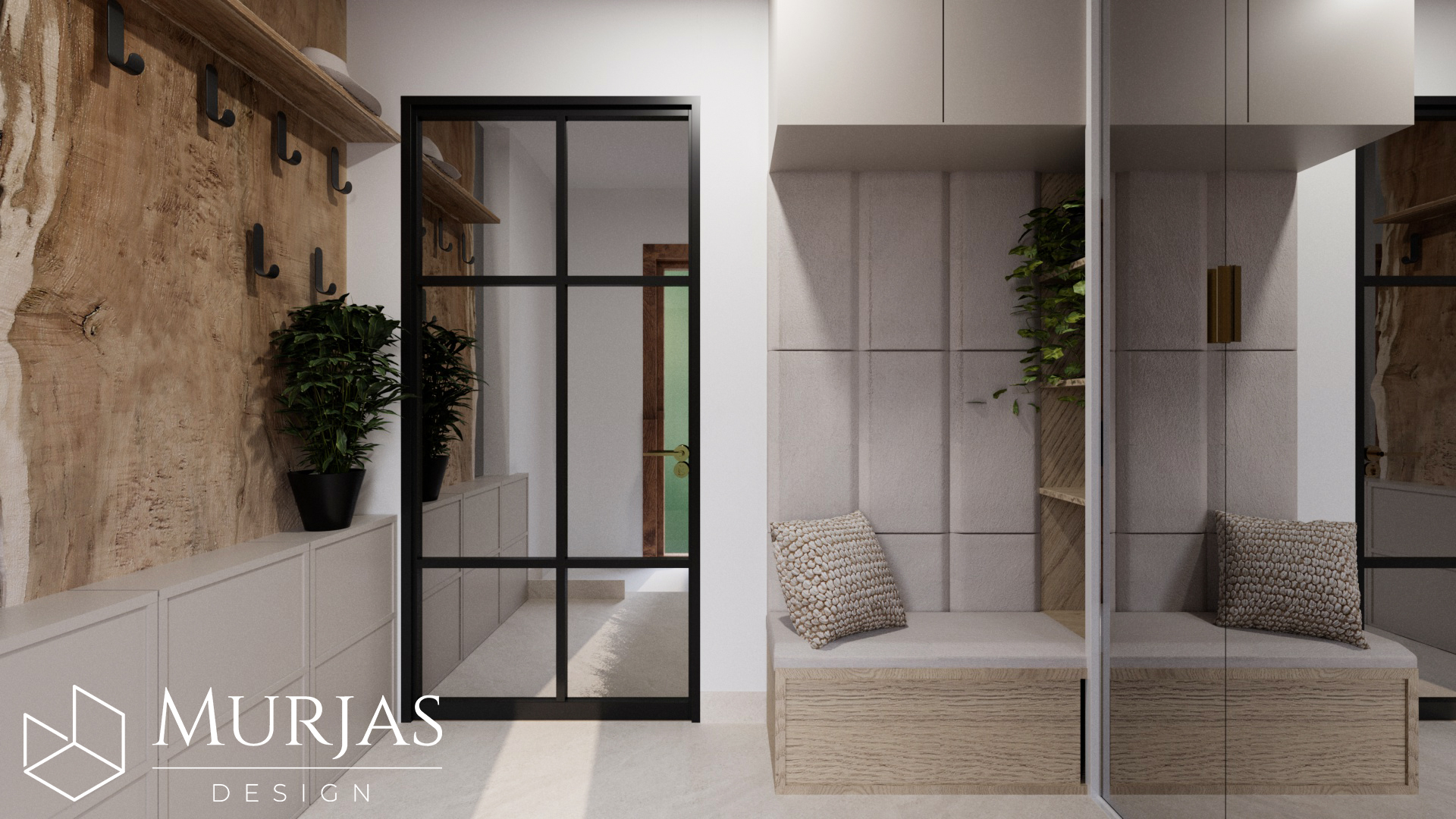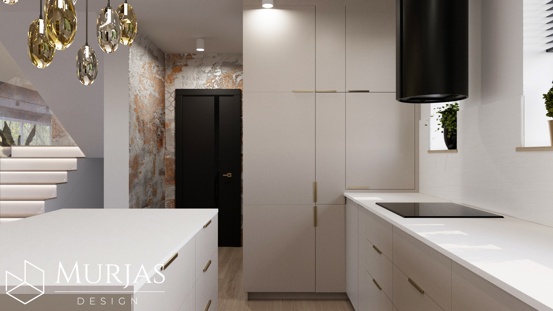 Nowoczesne wnętrze, w którym króluje elegancka prostota i dopracowane detale. Przestrzeń utrzymana jest w minimalistycznym stylu, podkreślonym przez wyjątkowy tynk dekoracyjny oraz ścienne monolity z naturalnego drewna. Całość dopełniają nietuzinkowe lampy dekoracyjne, które pełnią funkcję zarówno użytkową, jak i artystyczną. Główne akcenty estetyczne stanowią dzieła sztuki należące do właścicieli, tworząc przestrzeń osobistą, stylową i pełną wyrafinowanego smaku.