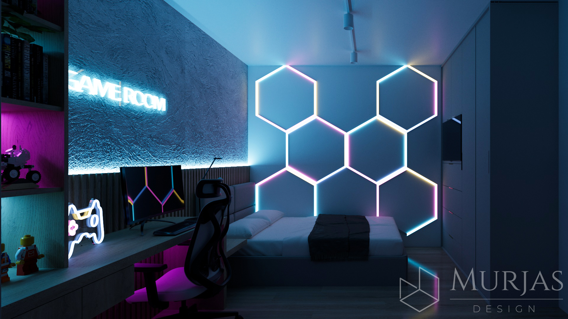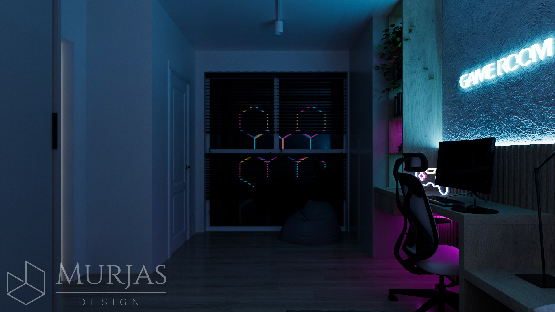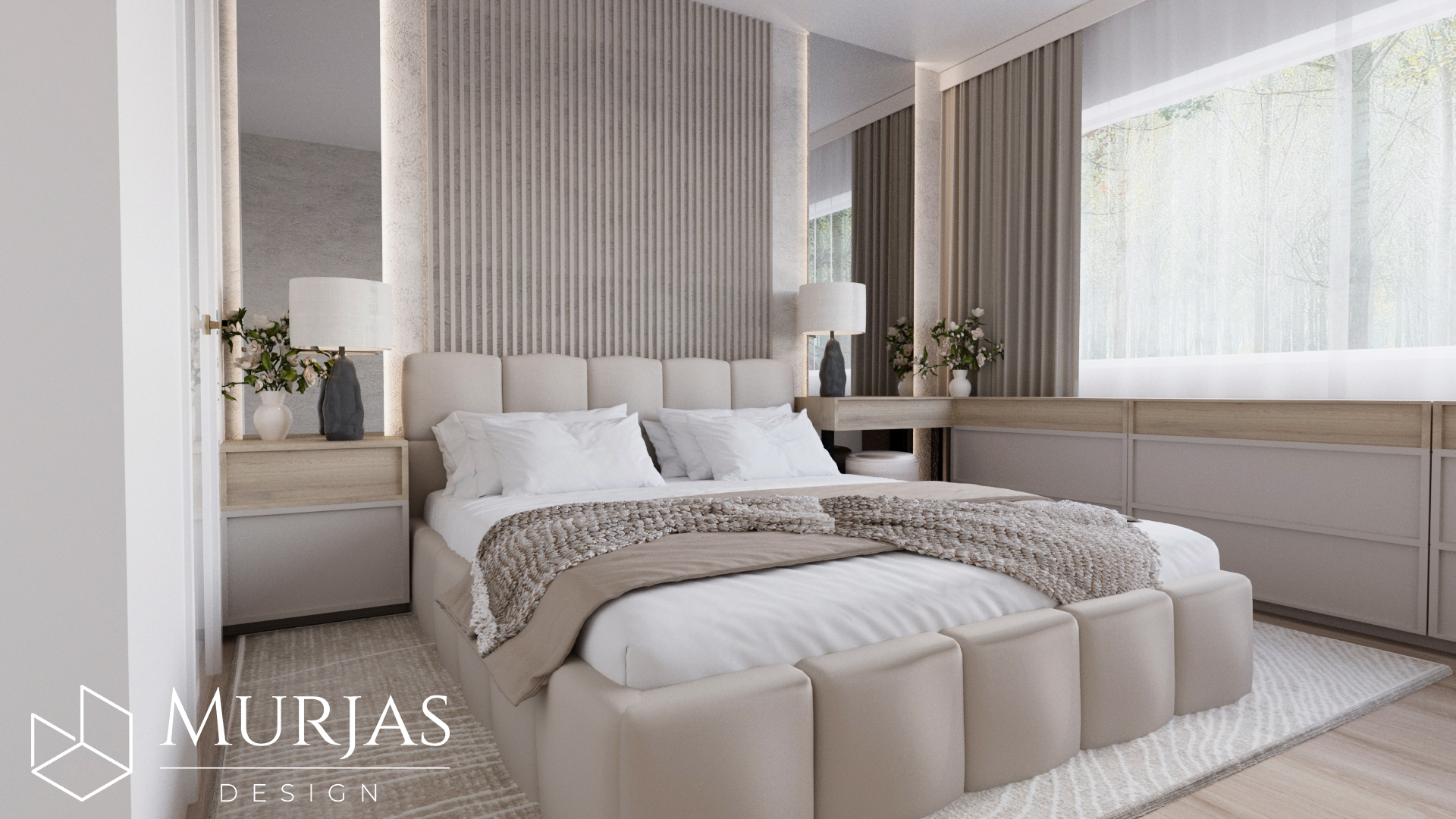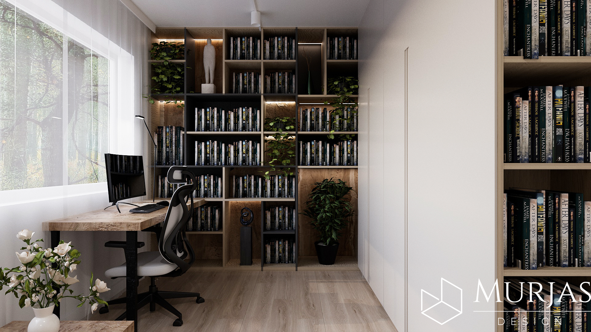 Nowoczesne wnętrze, w którym króluje elegancka prostota i dopracowane detale. Przestrzeń utrzymana jest w minimalistycznym stylu, podkreślonym przez wyjątkowy tynk dekoracyjny oraz ścienne monolity z naturalnego drewna. Całość dopełniają nietuzinkowe lampy dekoracyjne, które pełnią funkcję zarówno użytkową, jak i artystyczną. Główne akcenty estetyczne stanowią dzieła sztuki należące do właścicieli, tworząc przestrzeń osobistą, stylową i pełną wyrafinowanego smaku.